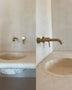 Para dar vida a essa visão, recorreu à MAS MAYA, uma marca que descobriu no Instagram e que se alinhava perfeitamente com a sua filosofia de design. O seu Natural Coating—terroso, tátil e discretamente refinado—tornou-se o elemento de ligação em toda a casa. "Parecia real", diz ela. "Não artificial nem excessivamente trabalhado. Acrescentava textura sem dominar."